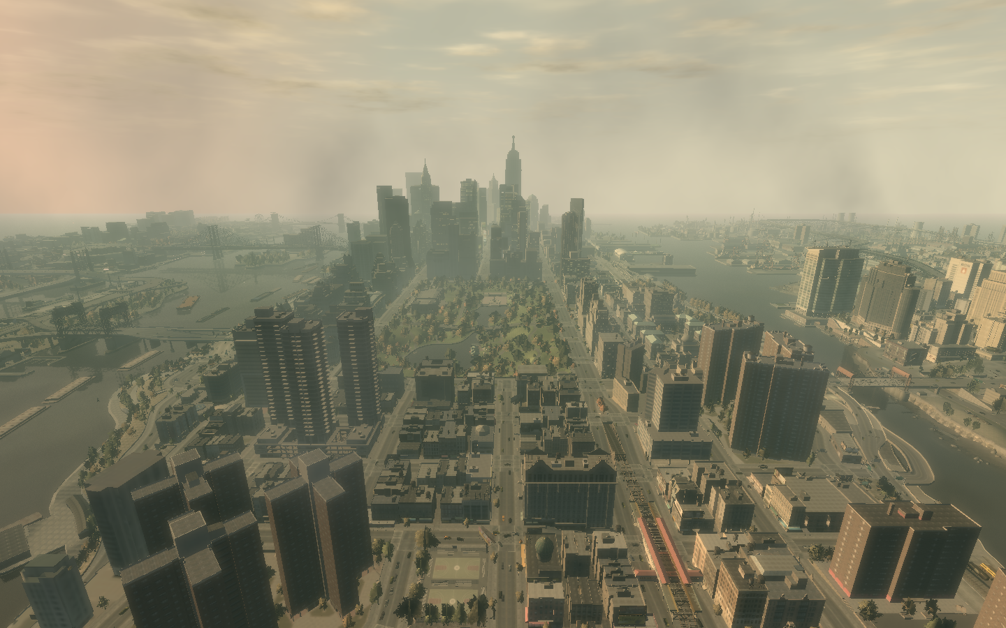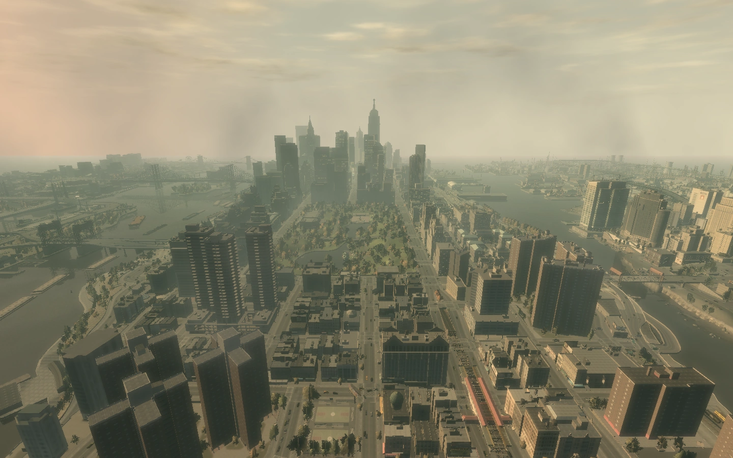 In GTA IV, the scaling of Liberty City as compared to New York City has a number of differences in the building heights, road distances, and landmark positions. Liberty City is also known as a shrunk version of New York City with almost everything cramped together.